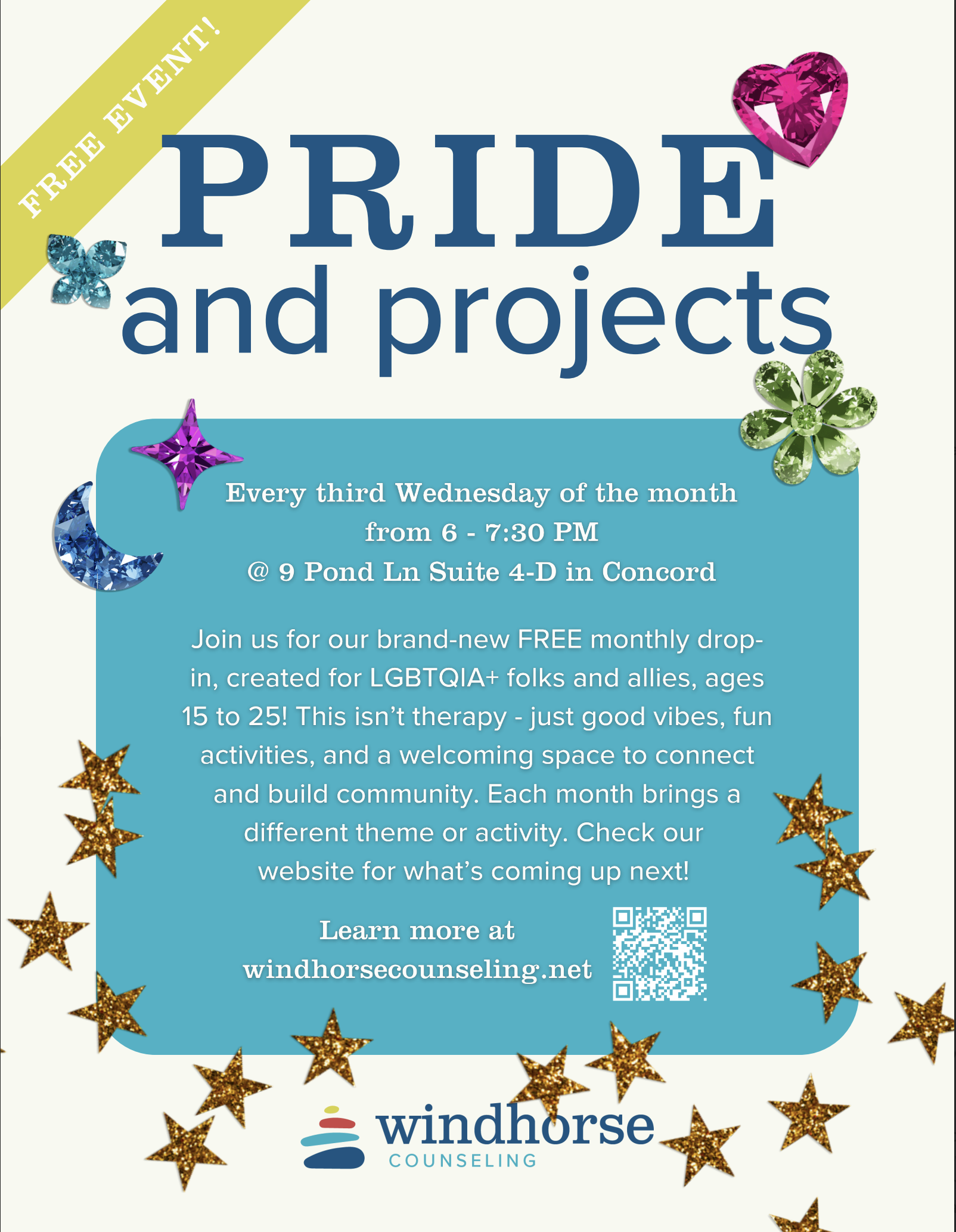Informal craft session staffed by Windhorse; LGBTQIA+ folks and allies between 15 and 25 encouraged to drop in! Third Wednesday of every month.